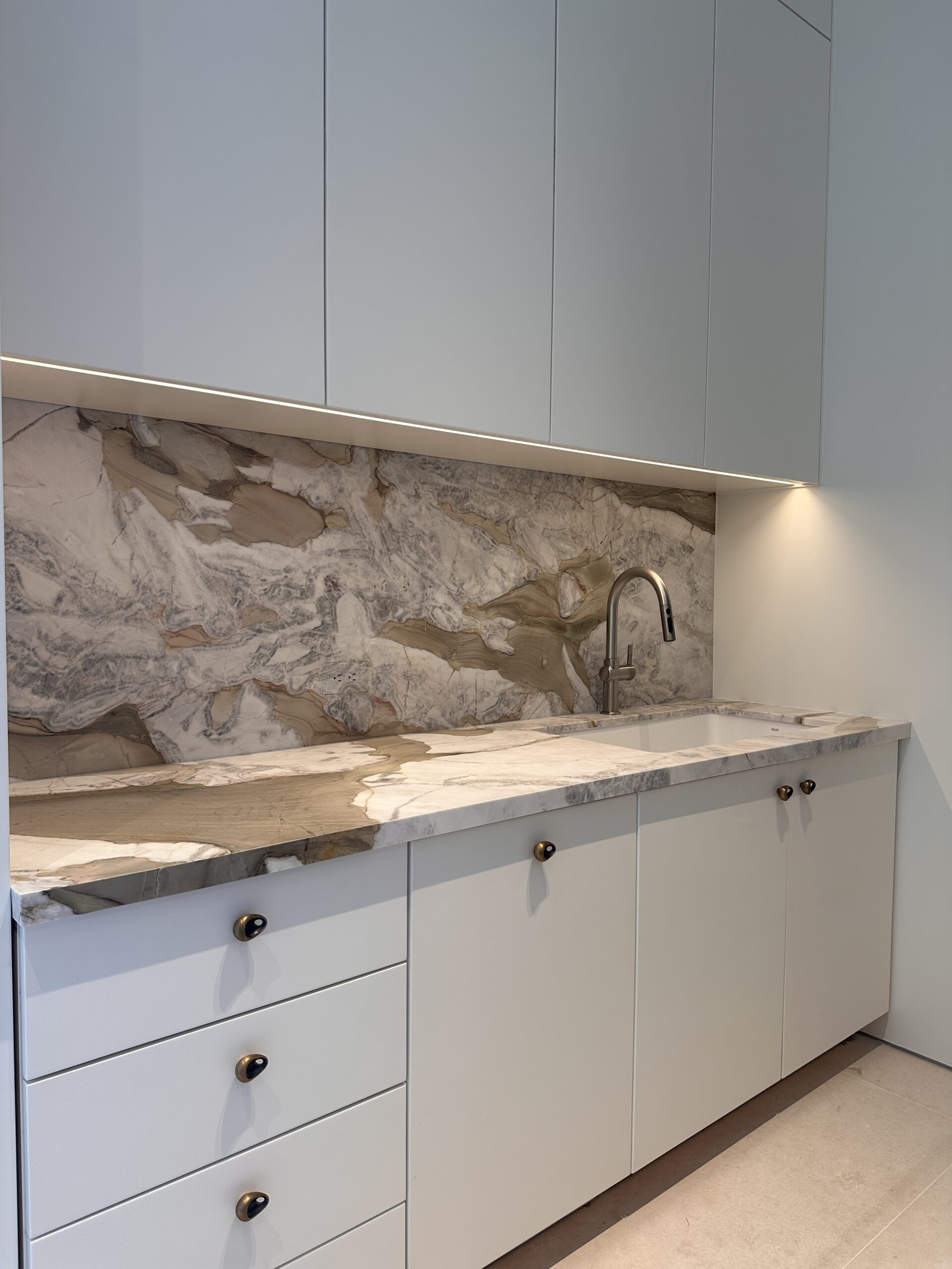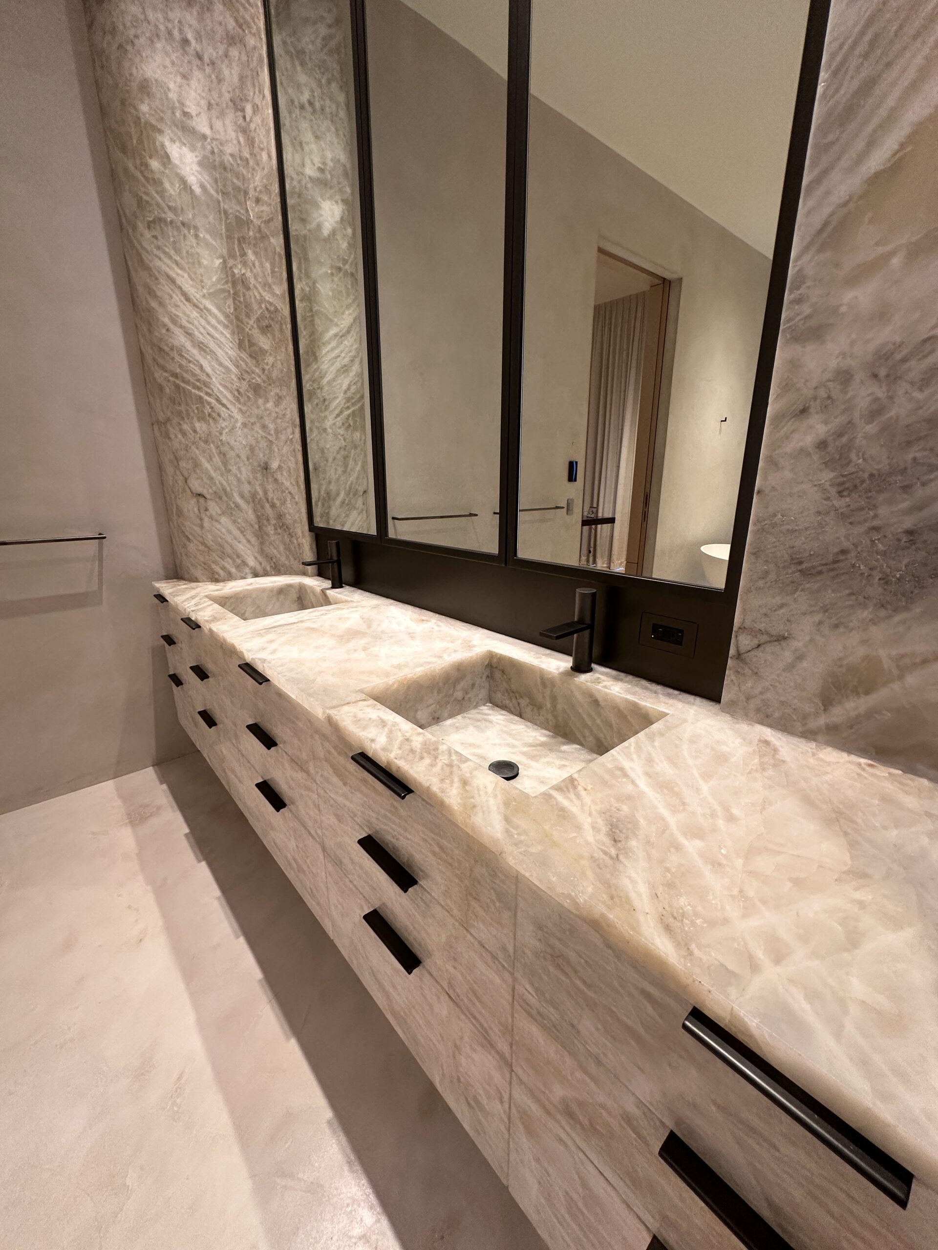 Together we handle the entire process—template, layout, bookmatch, fabricate, coordinate, and install—delivering a unified, end-to-end service.